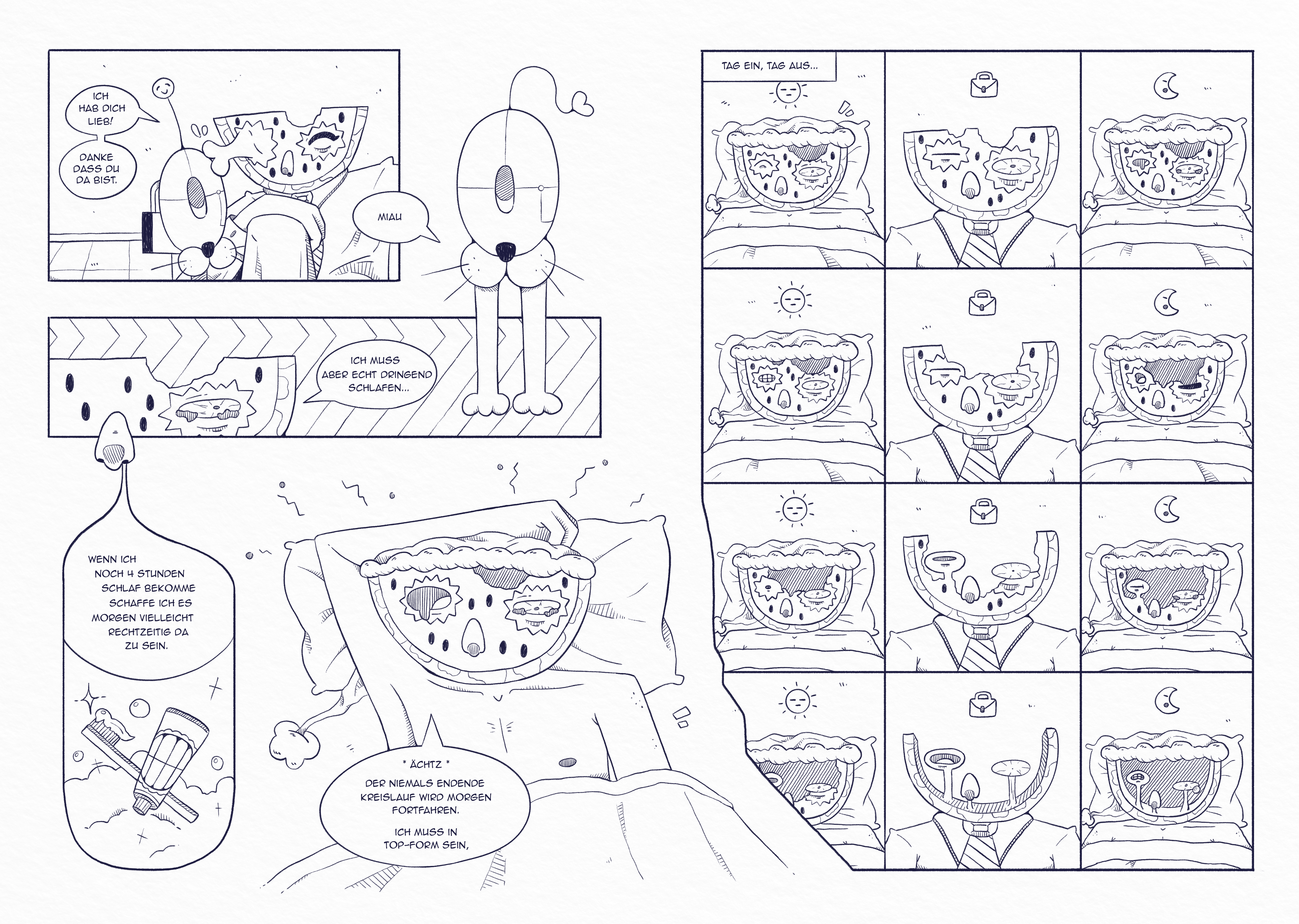Ein ausgewogenes und glückliches Leben zu führen, welches mit ihm resoniert, stellt sich als gar unmöglich da. Mit Miezmal, seiner einzigen Freude im Leben, an seiner Seite besteht allerdings vielleicht noch Hoffnung.