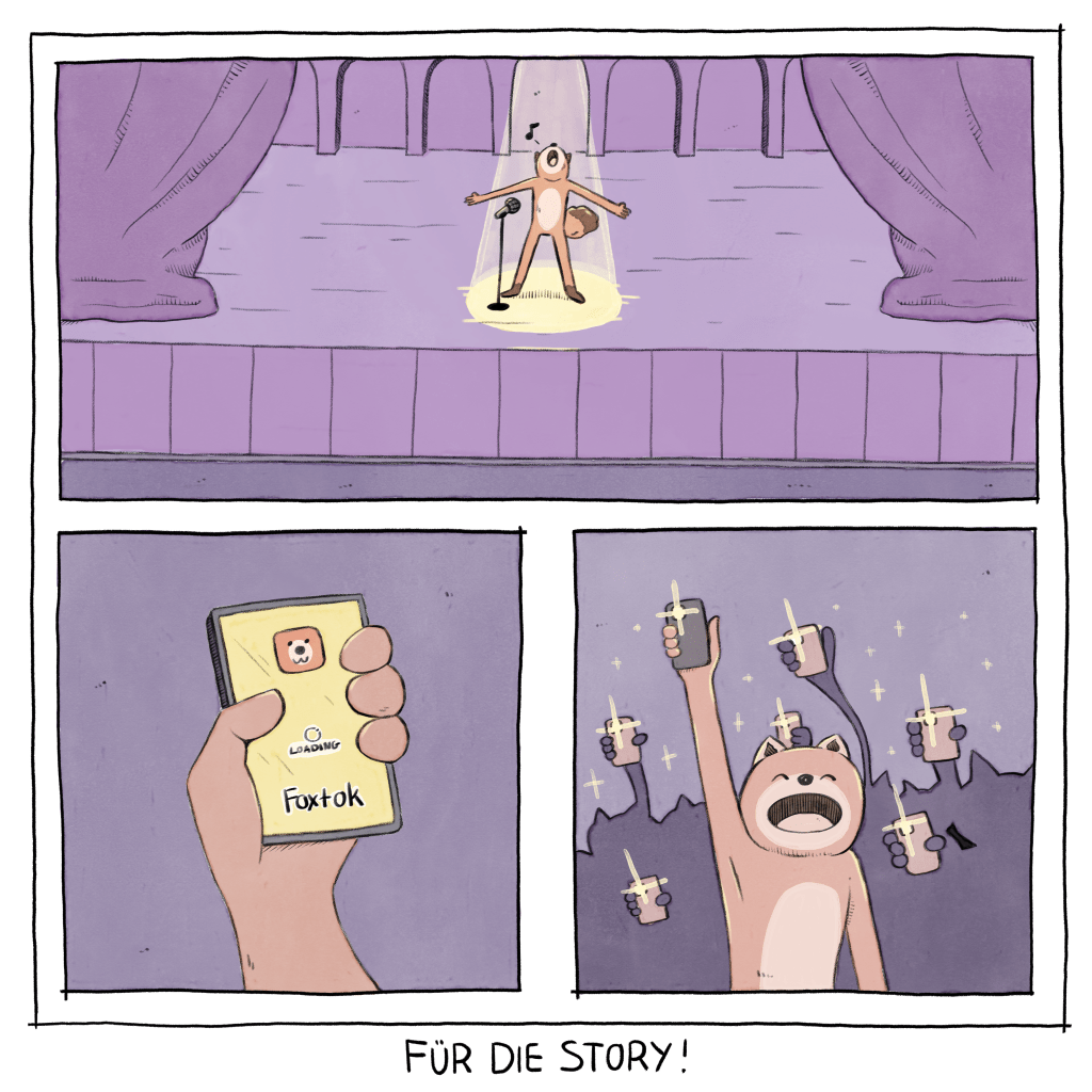 Sie leben in einer sehr polarisierten Gegenwart, voller Einflüsse und Reize. Diese Mini-Webcomic Reihe verfolgt personifizierte Füchse durch ihren konsumgetriebenen Alltag. Was dabei schnell feststellbar ist, sind die parallelen zu uns Menschen.